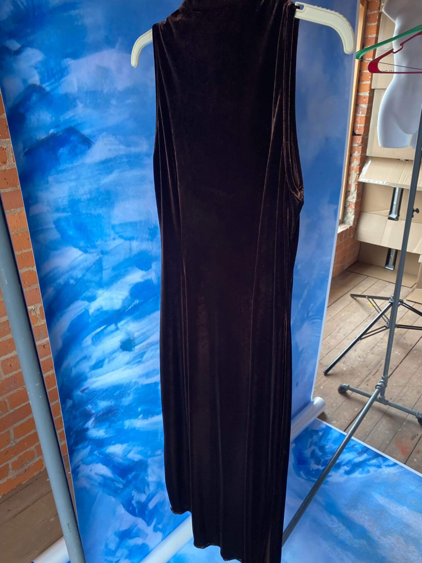 Women’s Japanese style long brown velvet dress with embroidered flowers