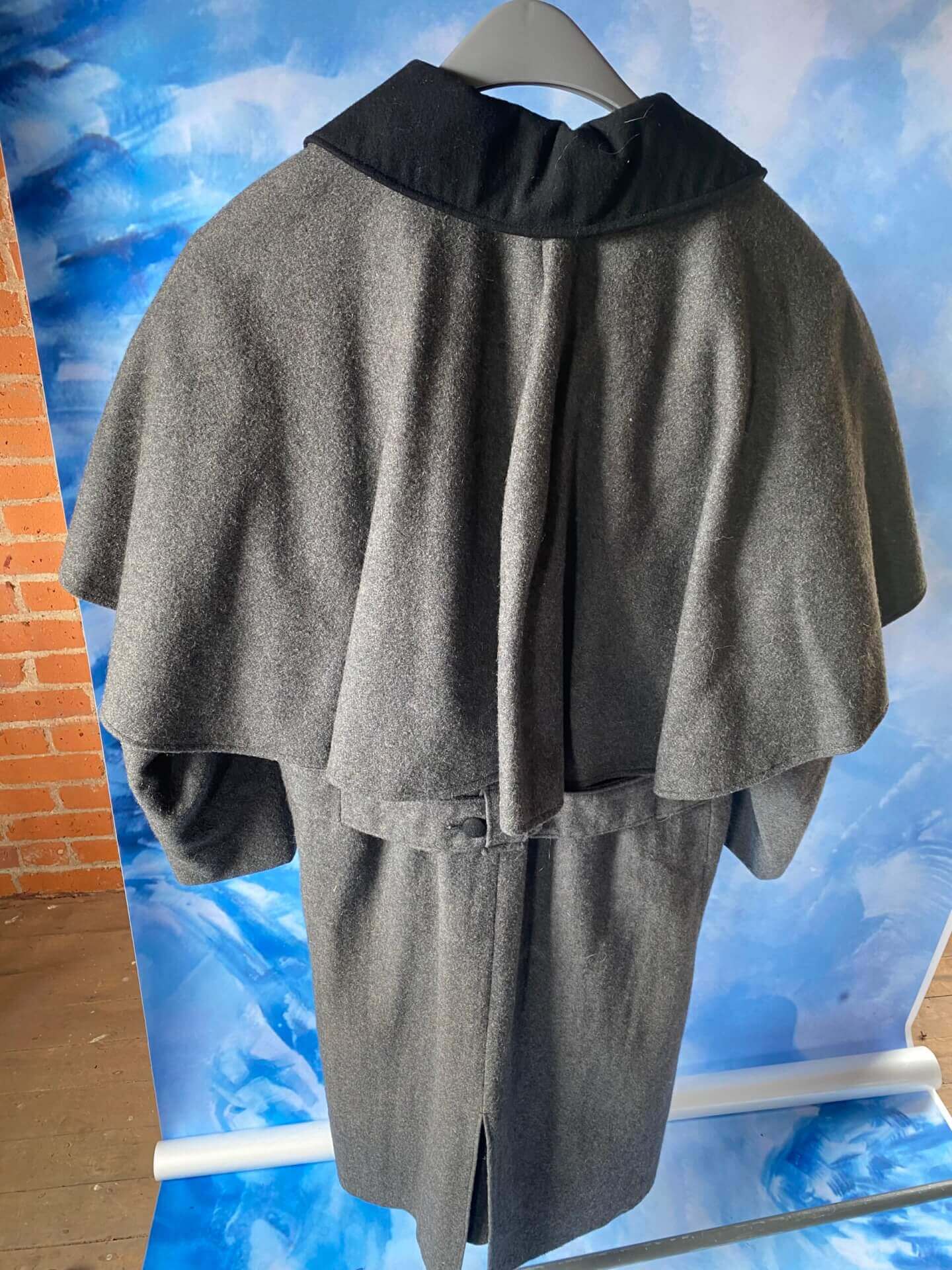 Men’s gray extra heavy wool coat with cape and black collar