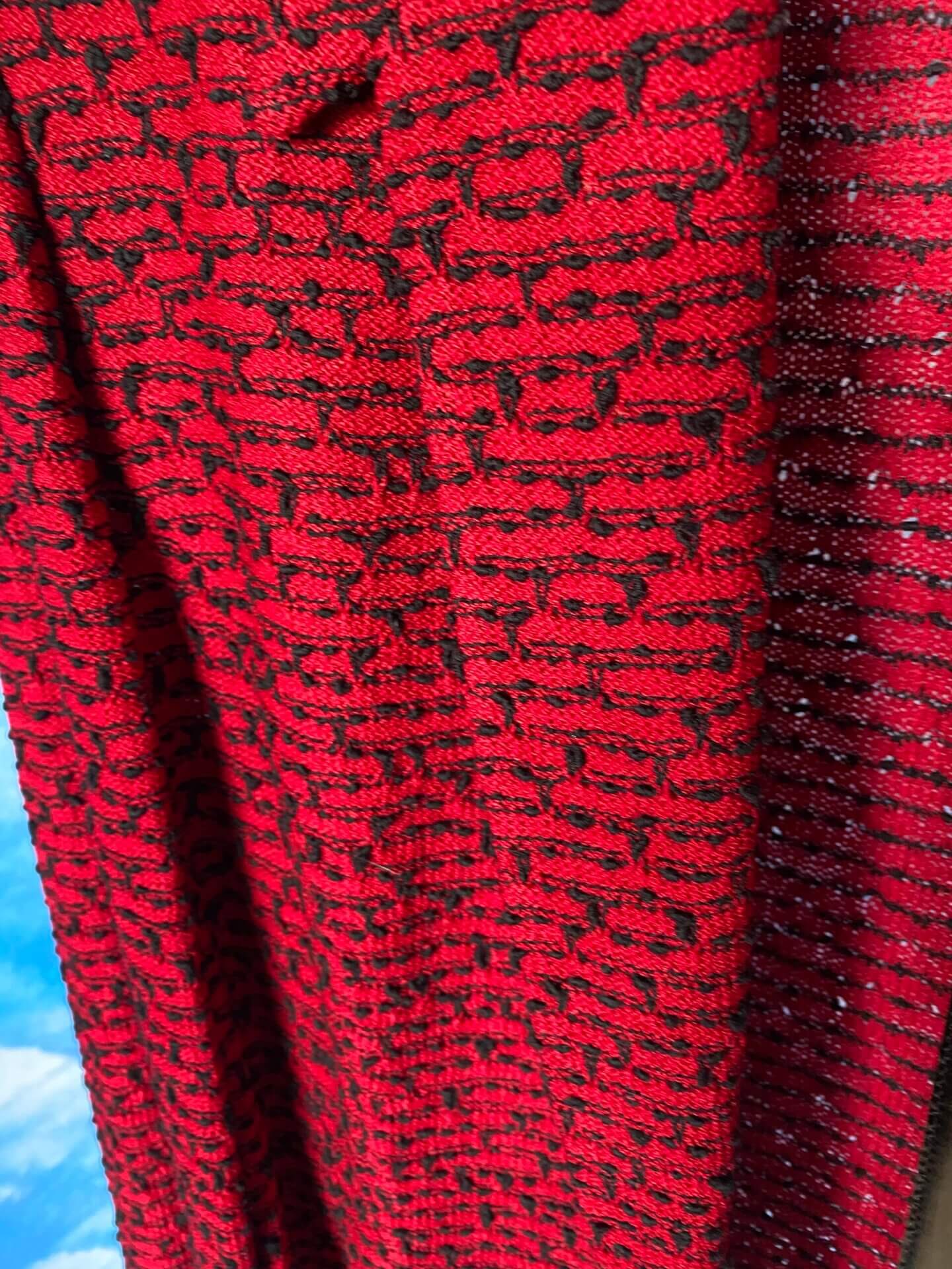 Women’s red print coat and belt