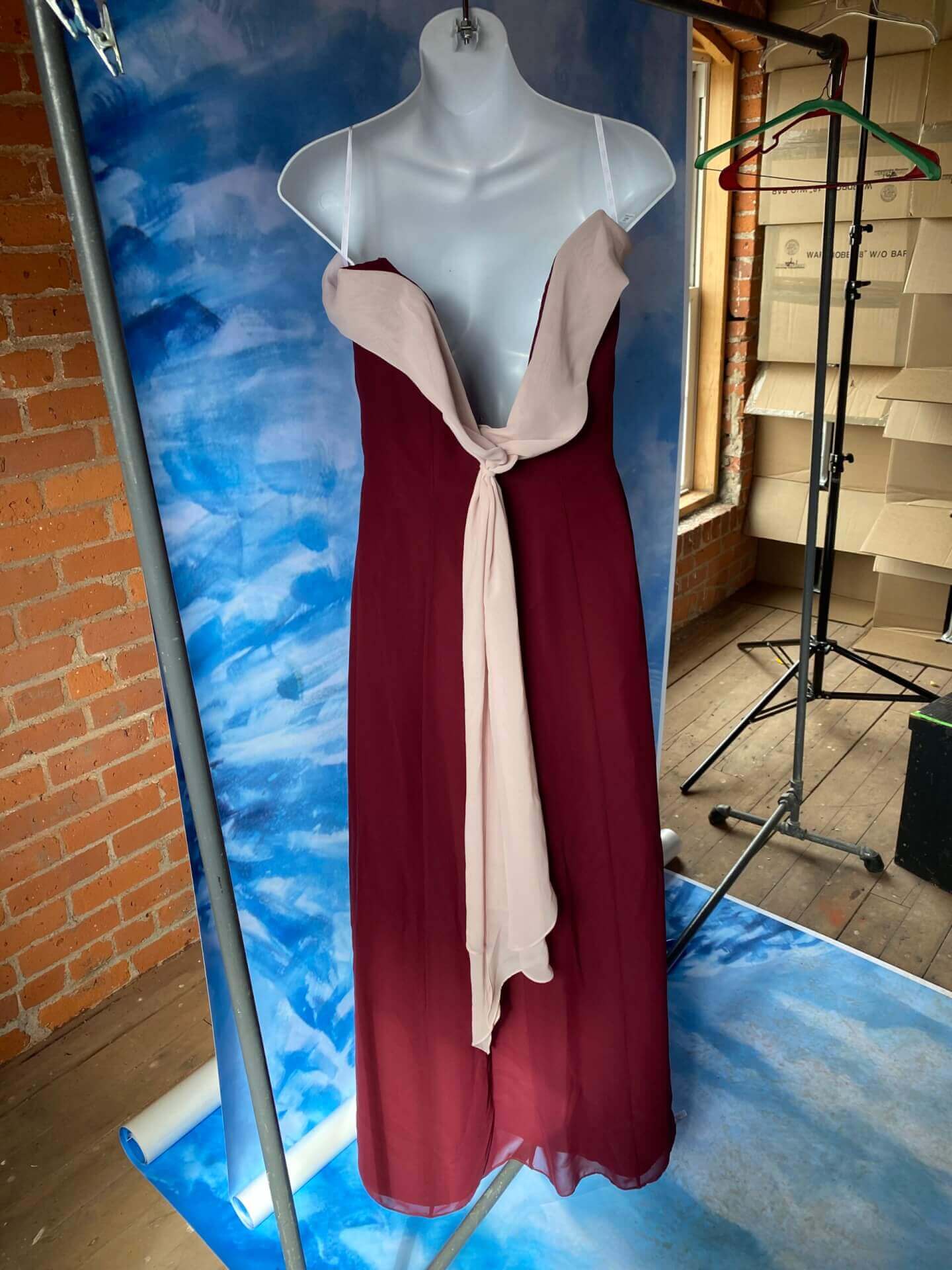 Women’s long burgundy spaghetti strap dress