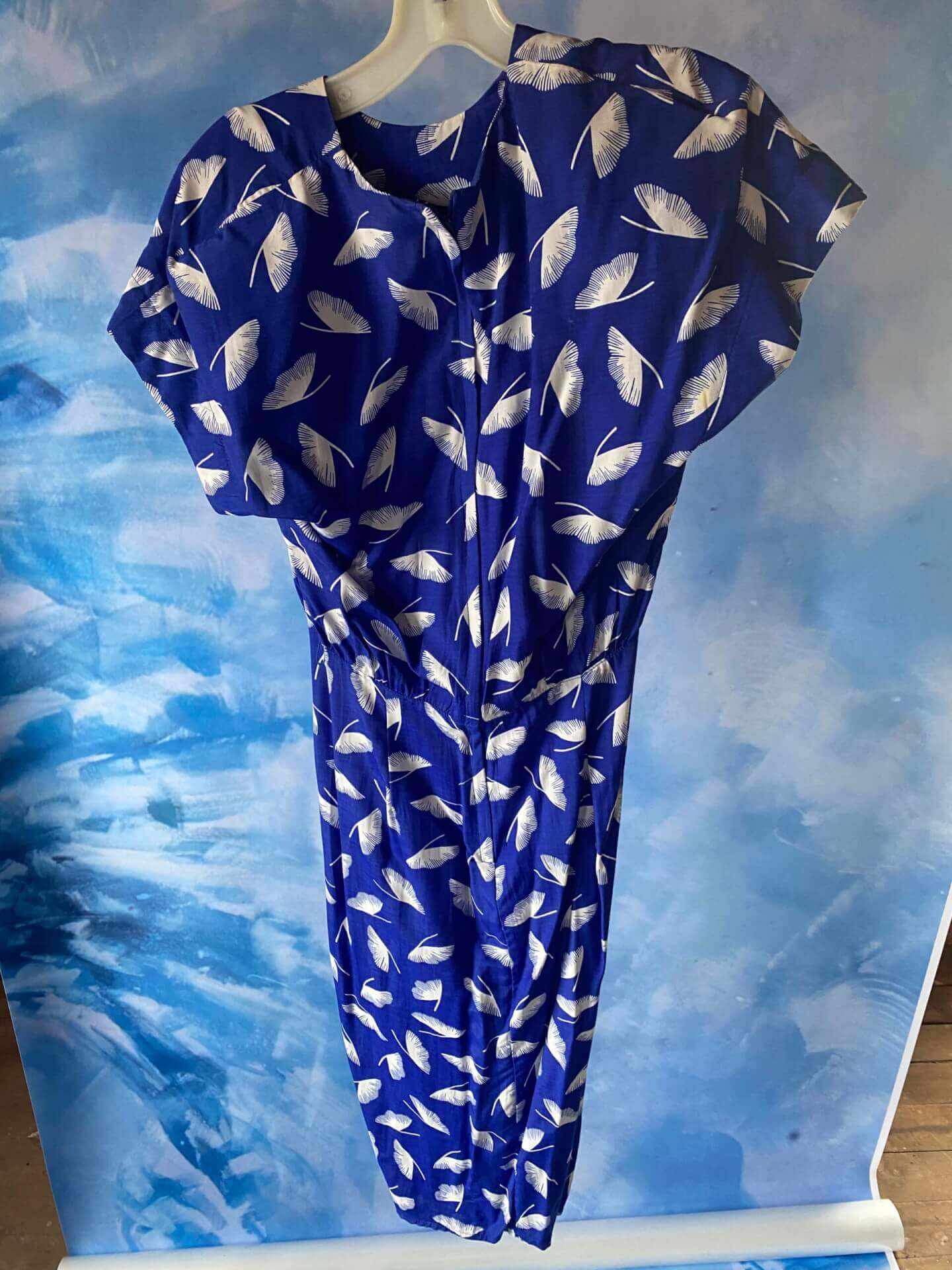 Women’s blue dress with white leaves print