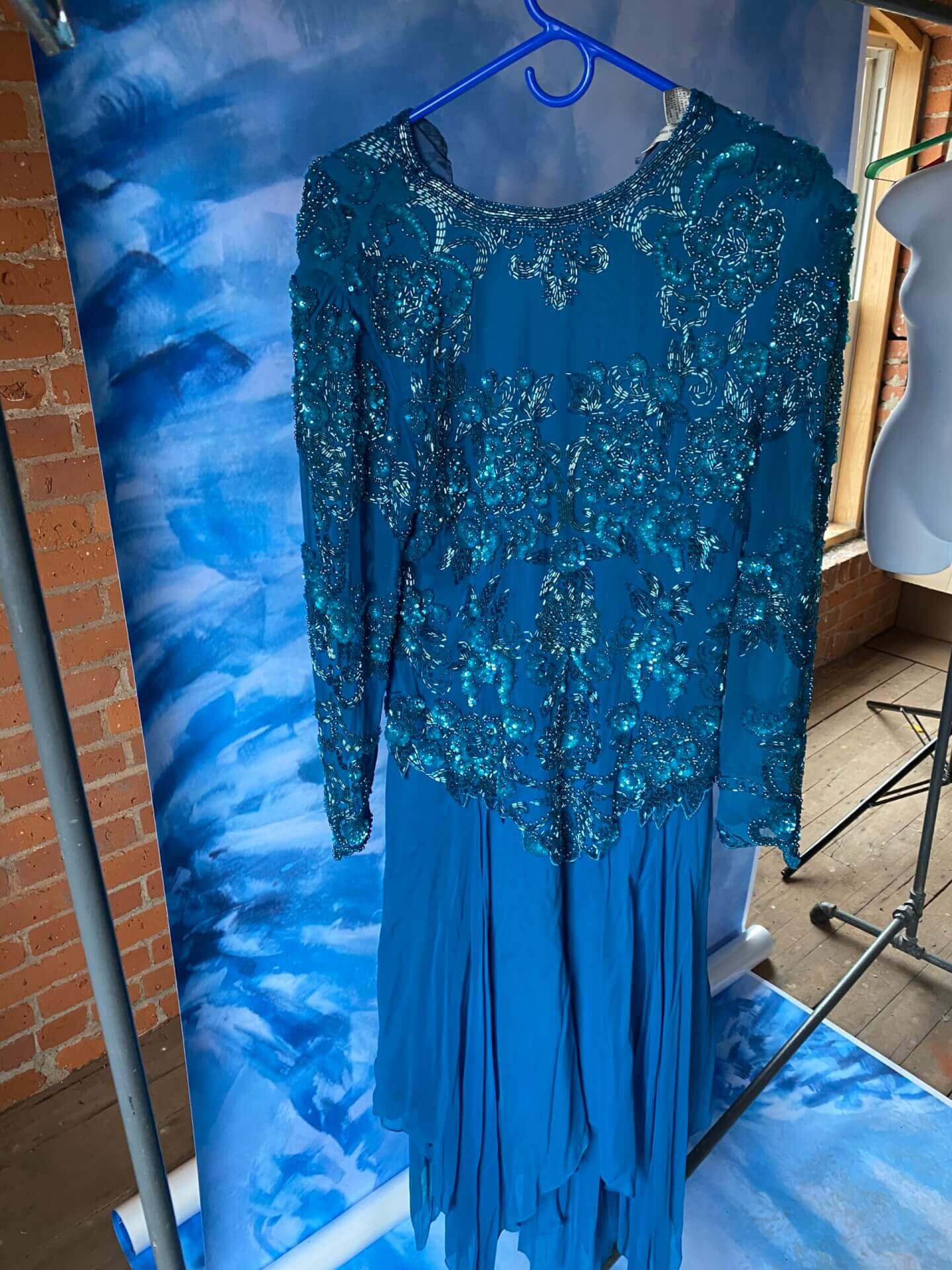 Women’s teal beaded cocktail dress
