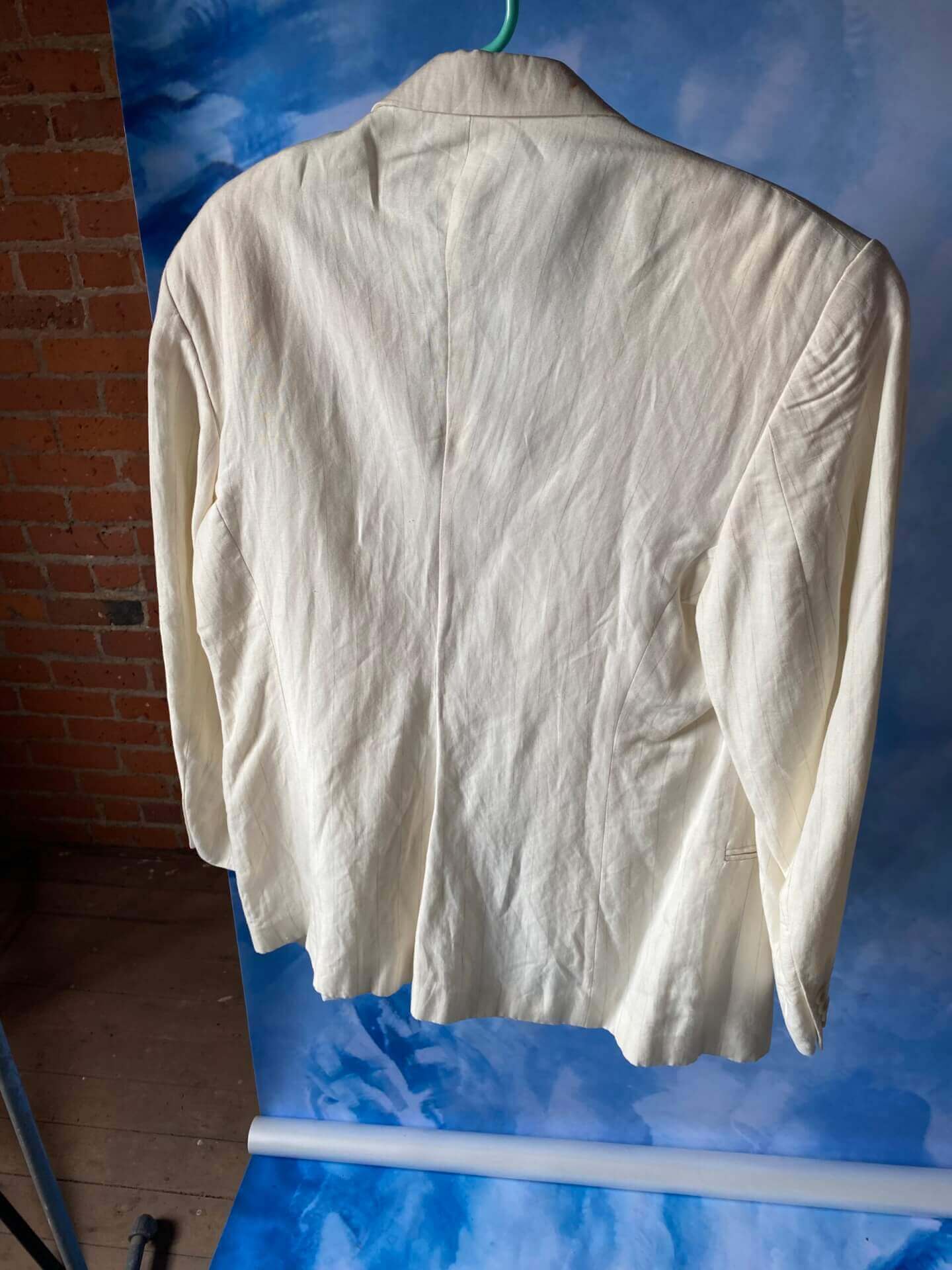 Men’s cream colored pinstripe jacket