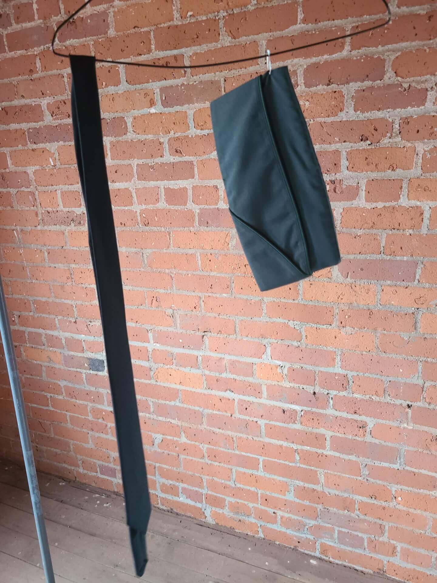 2 pants, black tie and a hat