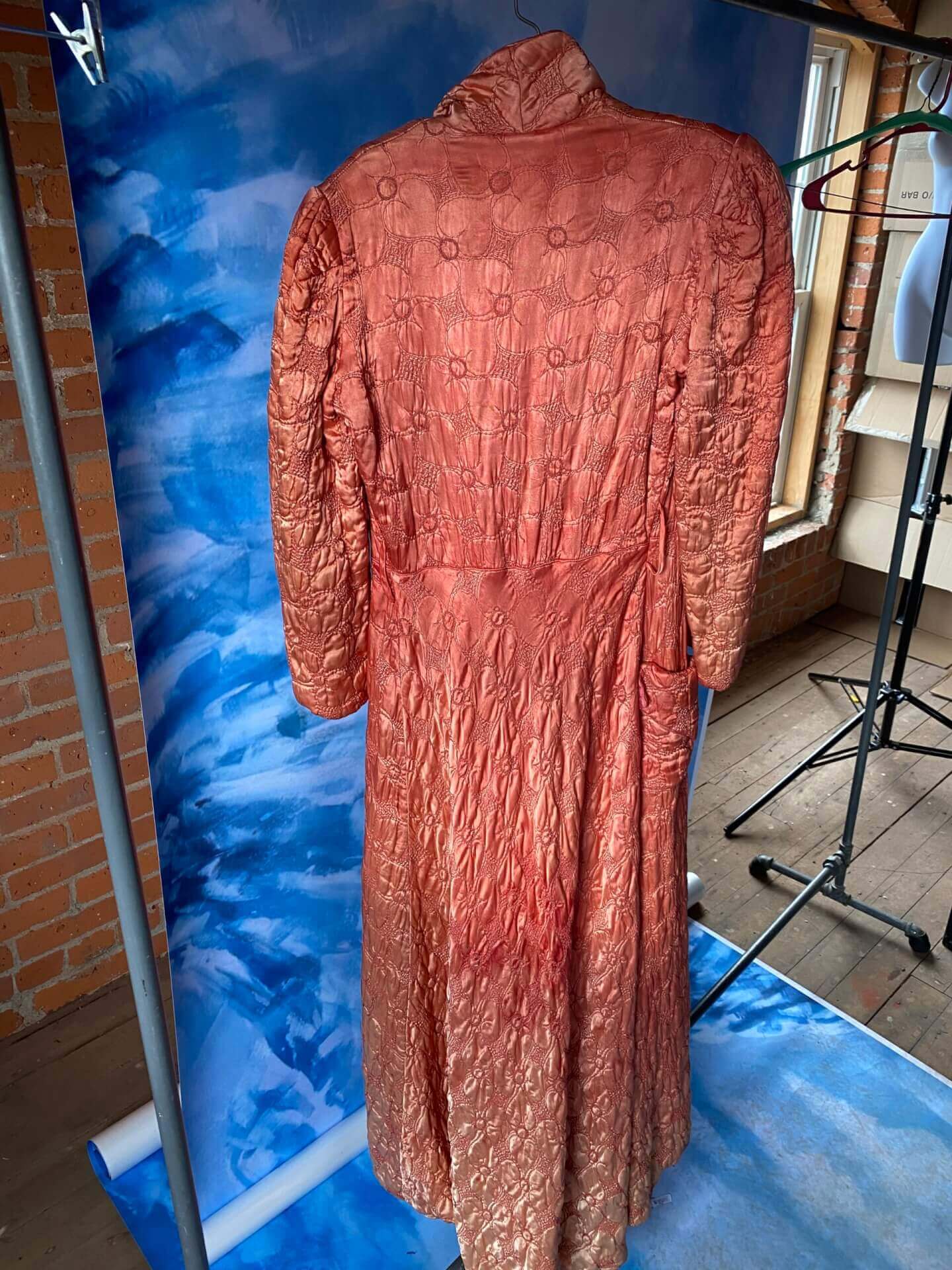 Women’s dark peach quilted silk robe