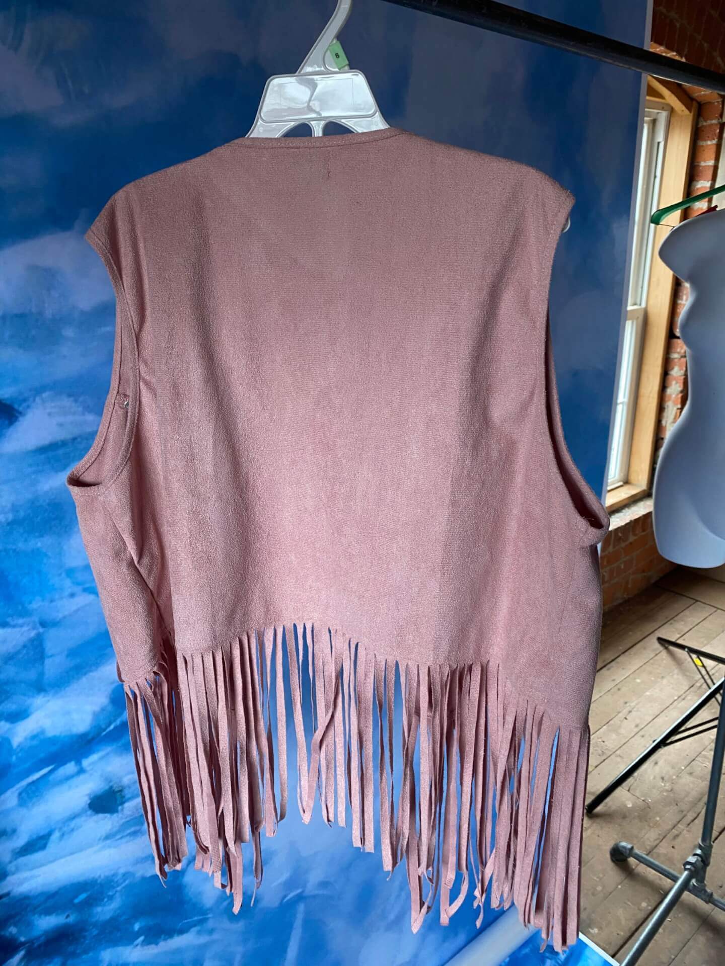 Women’s pale pink fringed vest
